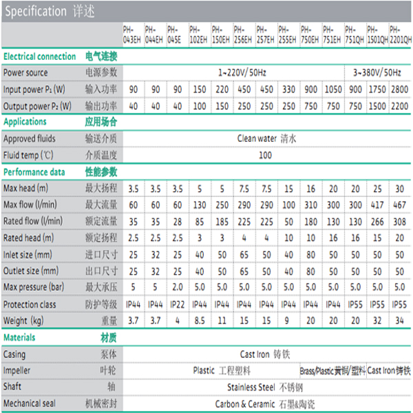 熱水循環(huán)泵PH-1501QH(老型號:PH-1500QH)