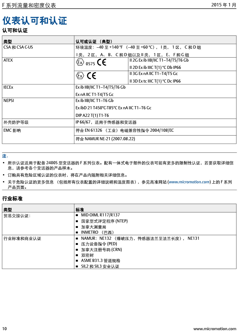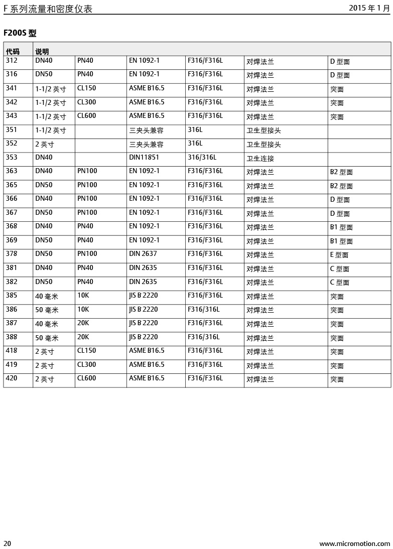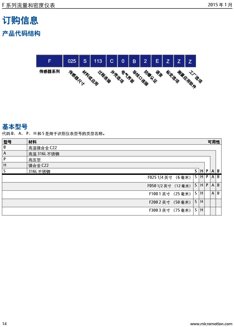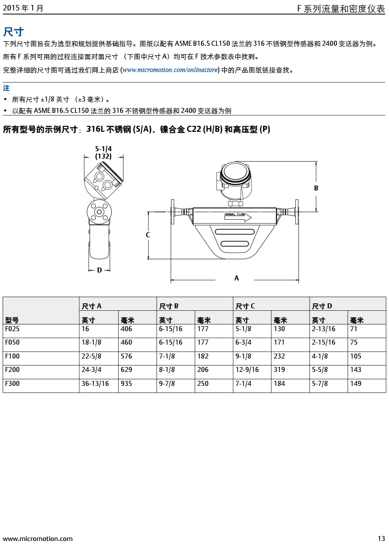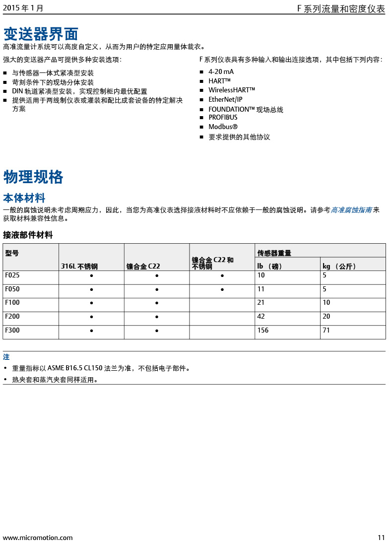 名稱:高準 (Micro Motion®) F 系列流量和密度儀表