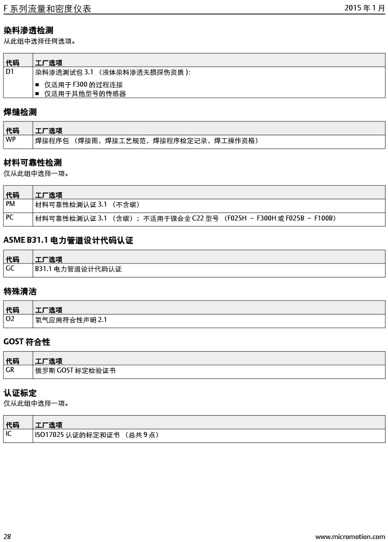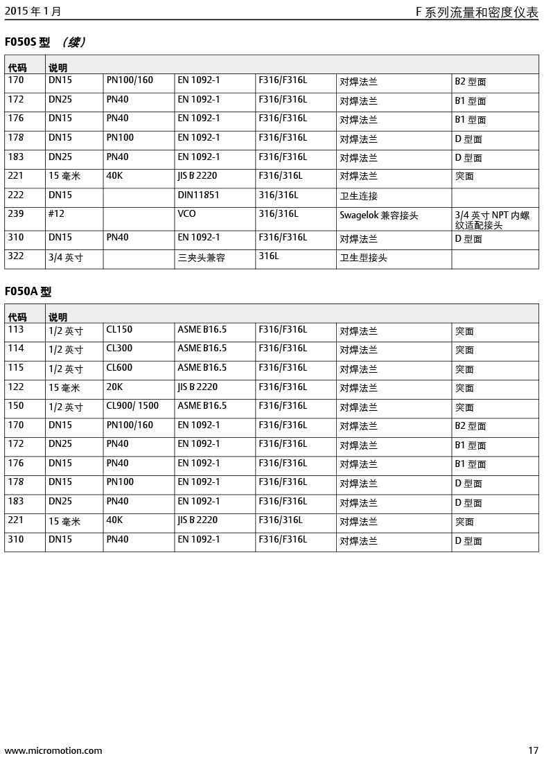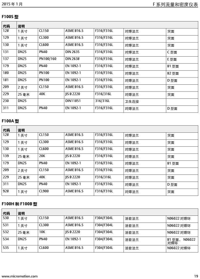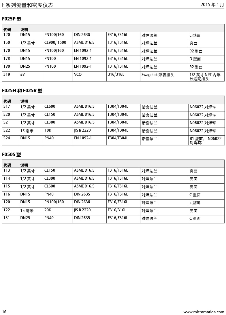 名稱:高準 (Micro Motion®) F 系列流量和密度儀表