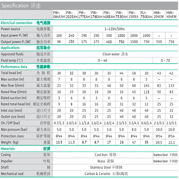 ◆·自吸能力強。◆·通過壓力開關自動運行,靈敏可靠,壽命長,性能穩(wěn)定。◆·可實現井下取水。◆·家庭,中小型建筑供水增壓。◆·泵體:鑄鐵。◆·葉輪:黃銅。◆·泵軸:不銹鋼。◆·機封:陶瓷+石墨。