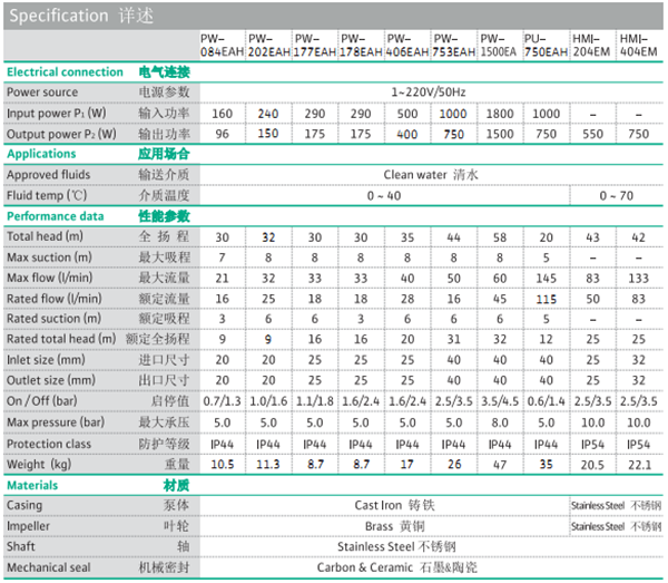 ◆·自吸能力強。◆·通過壓力開關自動運行,靈敏可靠,壽命長,性能穩(wěn)定。◆·可實現(xiàn)井下取水。◆·家庭,中小型建筑供水增壓。◆·泵體:鑄鐵。◆·葉輪:黃銅。◆·泵軸:不銹鋼。◆·機封:陶瓷+石墨。