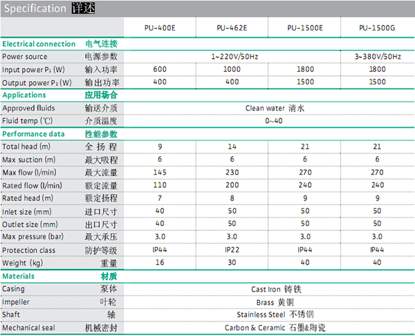 名稱:自吸泵PU-1500E/G