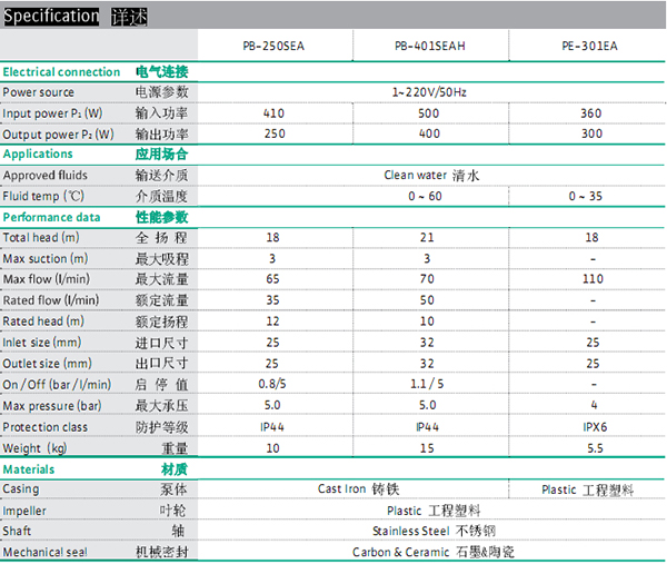 型號:PB-250SEA