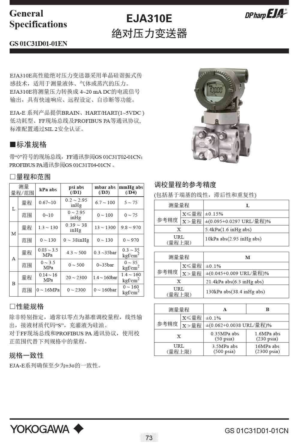 名稱:EJA310E絕對壓力變送器